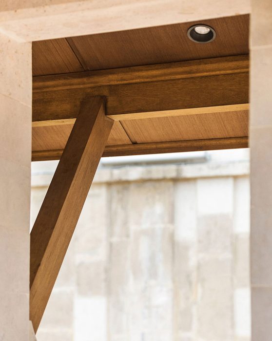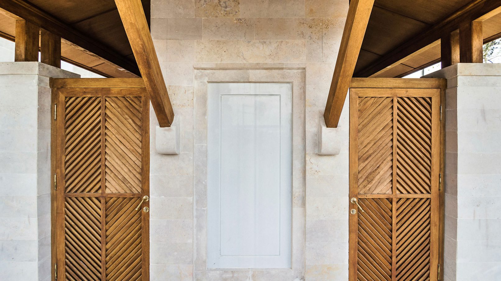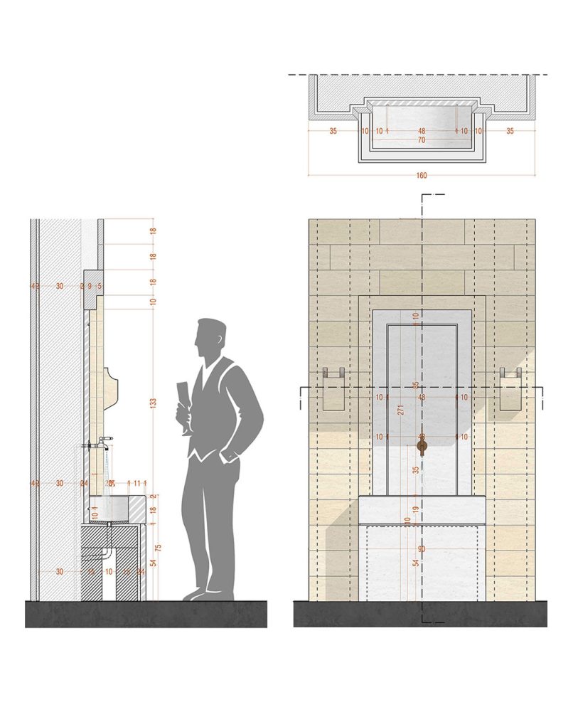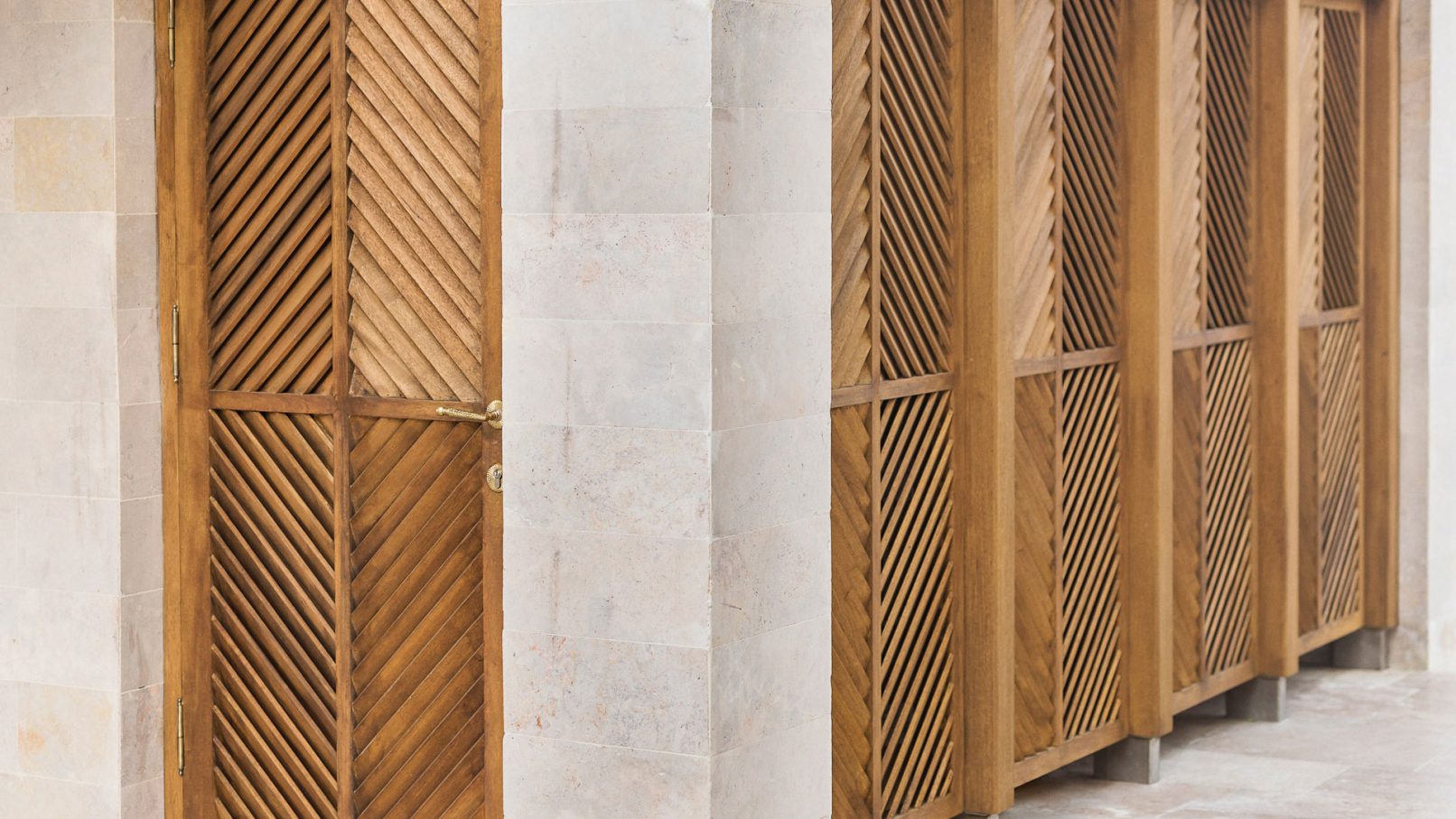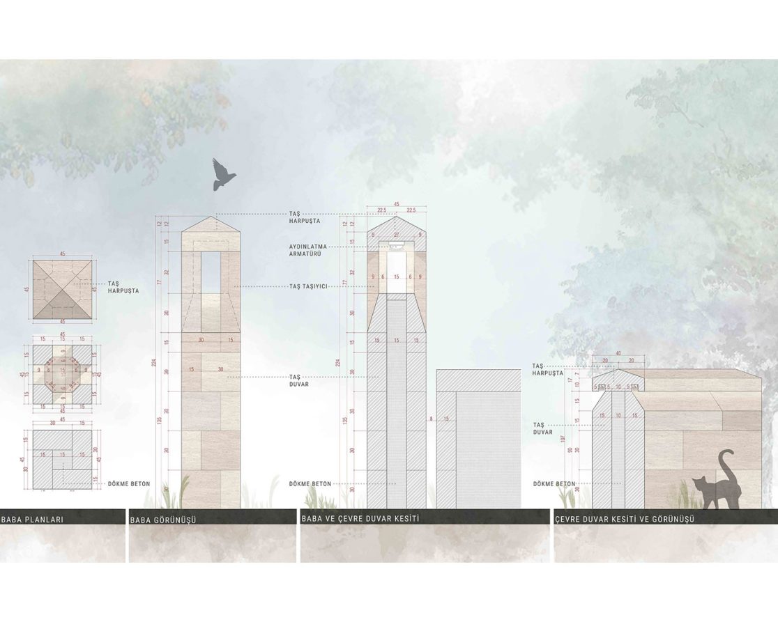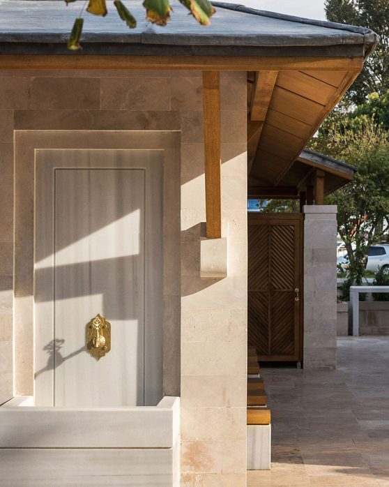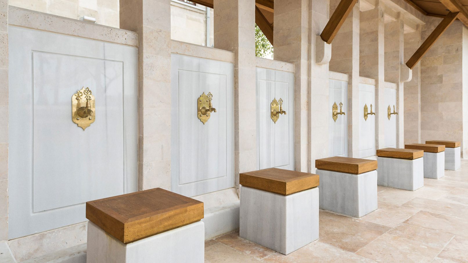 Arka cephede ise kadınların açık havada abdest almasına imkân veren ahşap kajlarla görsel olarak perdelenmiş ama havadar / yarı açık bir mekân bebek bakım odası ile birlikte yer alır.