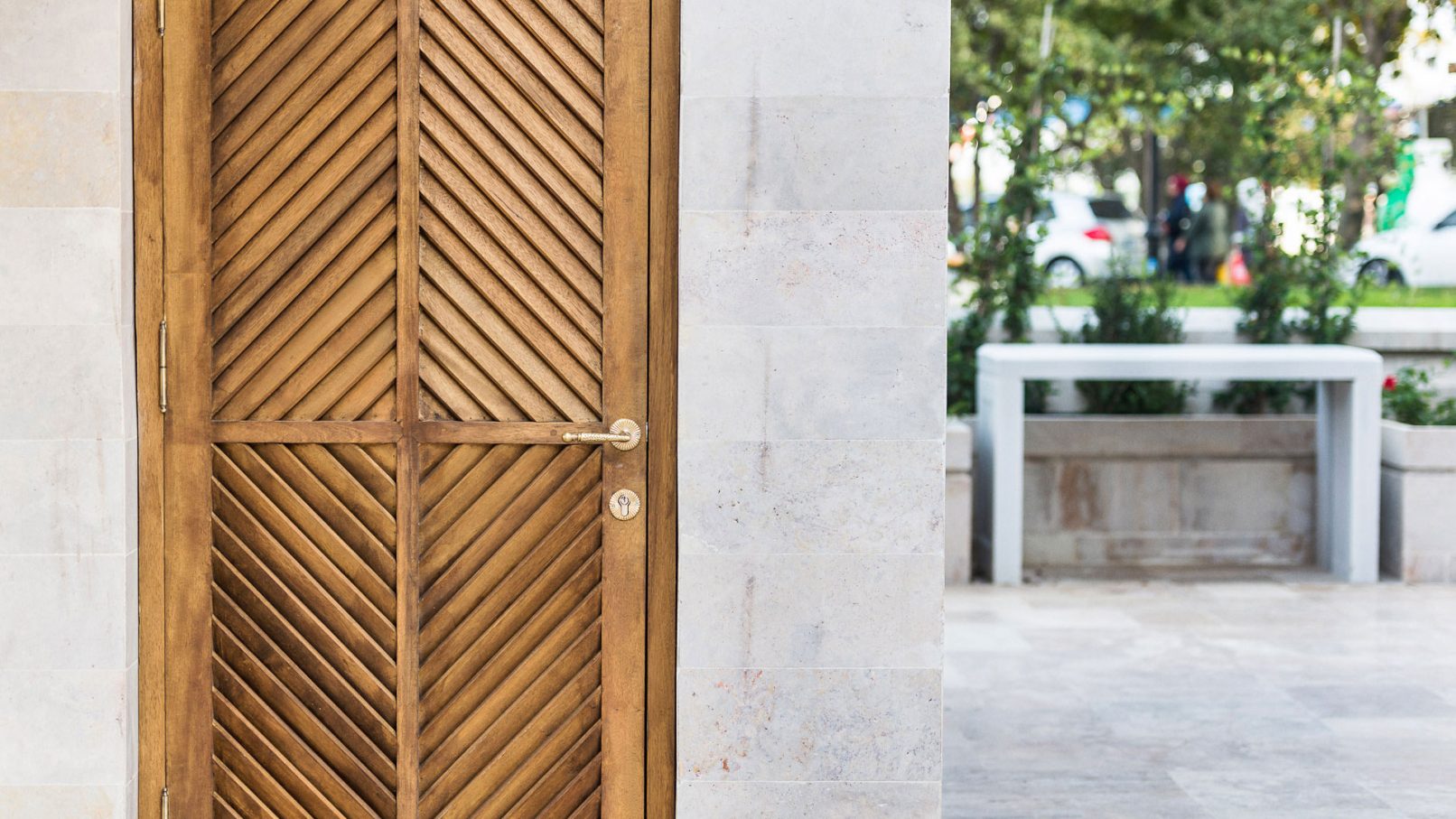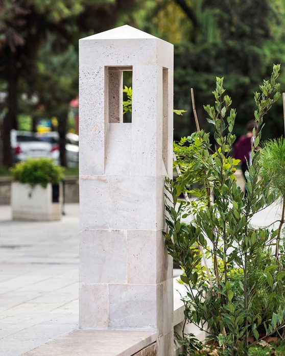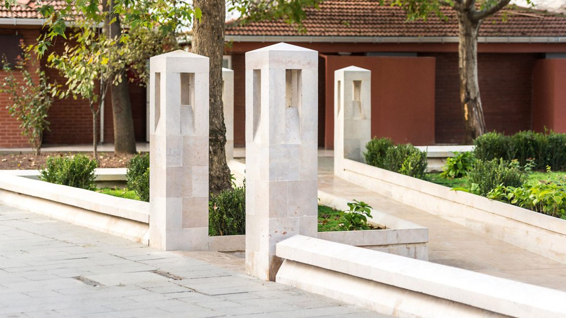 Avlu mekânının sınırlarını, çevre ile ilişkisini kısıtlamayan alçak duvarlar belirler. Bu duvarlar yığma taştan, alçak ve aydınlatmalı duvarlardır. Duvarların belirlediği avluyu peysaj düzenlemeleri çevreler, caminin önünde ise taş döşemeli sert zemin yer alır.