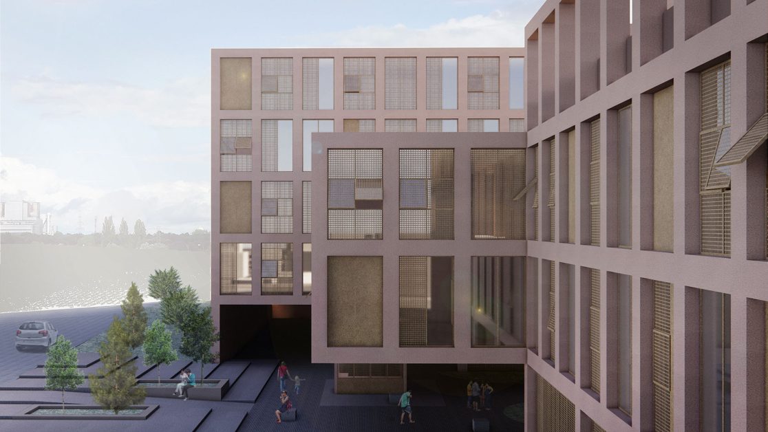 6) Bina kütlesinde önerilen avlu alanları binanın ve kullanıcıların nefes almasını sağlarken iç dış birlikteliğini de ön plana çıkartır.