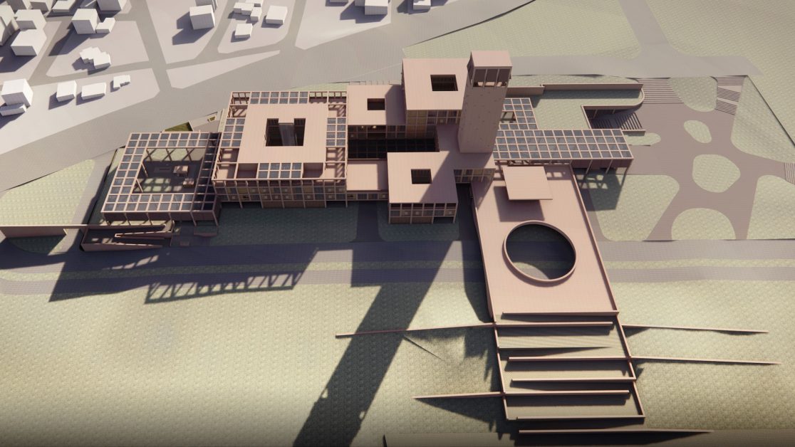 9) Yapımı devam eden millet bahçesi ile öneri bina arasında bir yaya köprüsü önerilmiştir. Yaya geçişini kesintiye uğratması muhtemel araç trafiğinden soyutlanarak park ile kamusal öneri binanın doğrudan ulaşımı sağlanmıştır. Yaya odaklı kullanım teşfik edilmiştir.