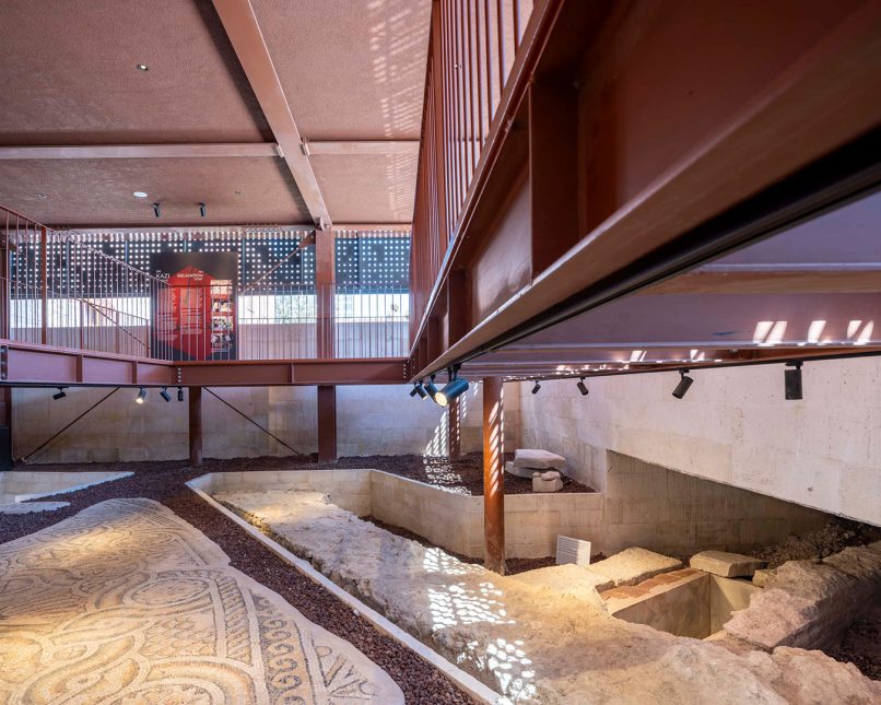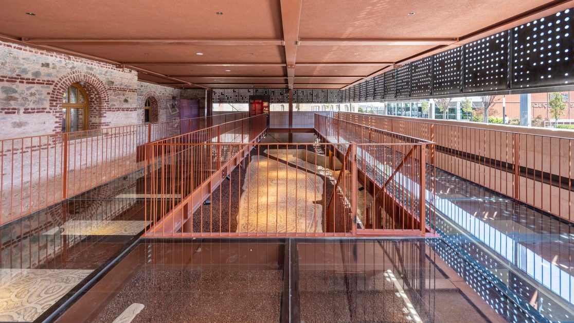 Mozaiklerin konumu, yüzey alanının büyüklüğü ve yine başka bir tarihi yapının, Osmanlı döneminden kalan askeri hastanenin yanında yer alıyor olmaları yapılacak yapıyı oldukça sınırlayan koşullardı. Mozaiklere de, Osmanlı mirası olan tarihî yapıya da dokunmayan bir koruma örtüsü tasarladık. Bunu yapabilmek için geniş açıklık geçerken kolaylık sağlayan bir çelik yapı tercih ettik. Çelik yapının bir başka avantajı ise hafif bir strüktür olması, kuru imalatla (tamamı kaynaklı değil bulonlu birleşim) çok basitçe monte edilebiliyor olmasıydı. Bu aynı zamanda ileride yeni kazılar veya başka gelişmeler yaşandığında yapının kolaylıkla geri sökülebilir ve geri dönüştürülebilir olmasını da sağladı…