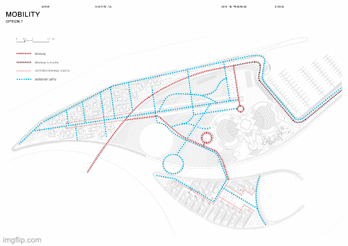 Although the proposed project provides for a rational system in an infrastructural context, which could be defined as functions built over a main backbone, it rejects, in terms of its main approach decision, the uniform/ monotonous approach in designing new spaces of such large surface area, aiming at creating a (kind of) ‘patchwork’ language as if it were designed by different architects at different times.