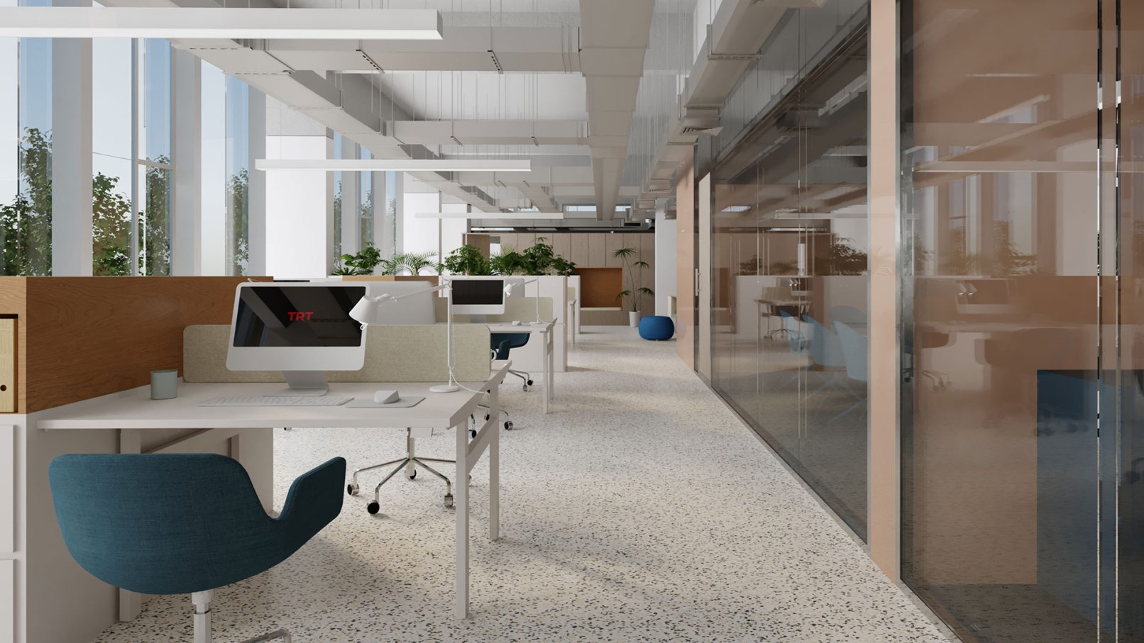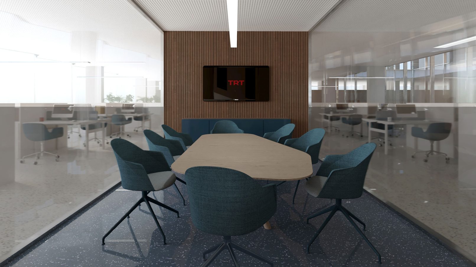 Amacımız, hem içte hem de dışta kurumun değerlerini yansıtan mekanlar yaratmaktır. TRT’nin değerlerini öne çıkararak, çalışanların üretkenliğini artıracak ve onları heyecanlandıracak bir ortam tasarlamayı hedefledik.