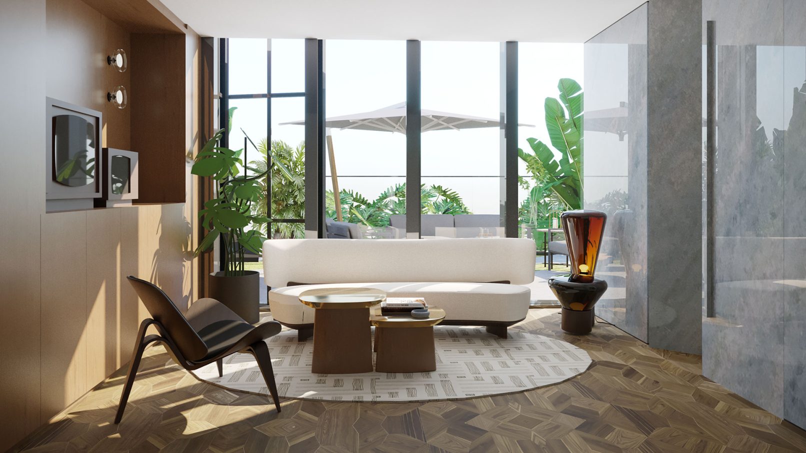 Yapının mekansal bağlamasını da analiz ederek, çarpıcı en önemli temaları seçildi: iç mekan ve dış mekan arasındaki bağların oluşturulduğu geçirgenlik sağlayan iç mekan tasarımlarında hakim rol oynamaktadır.